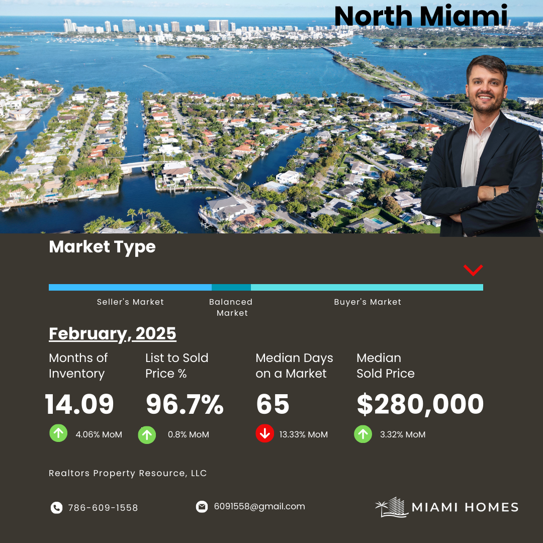 North Miami Market Update – May 2025With 13.87 months of inventory and homes staying on the market for 68 days, North Miami is firmly in buyer’s market territory. Despite a high list-to-sold ratio of 97.2%, inventory and days on market are up significantly. A strong opportunity for buyers looking to negotiate favorable deals.Sunny Isles Beach Market Snapshot – May 2025Sunny Isles Beach shows 23.63 months of inventory, with homes taking an average of 98 days to sell. While median sold price has surged to $1.2M, buyer power is increasing due to sluggish turnover. Sellers are still closing at 93% of...